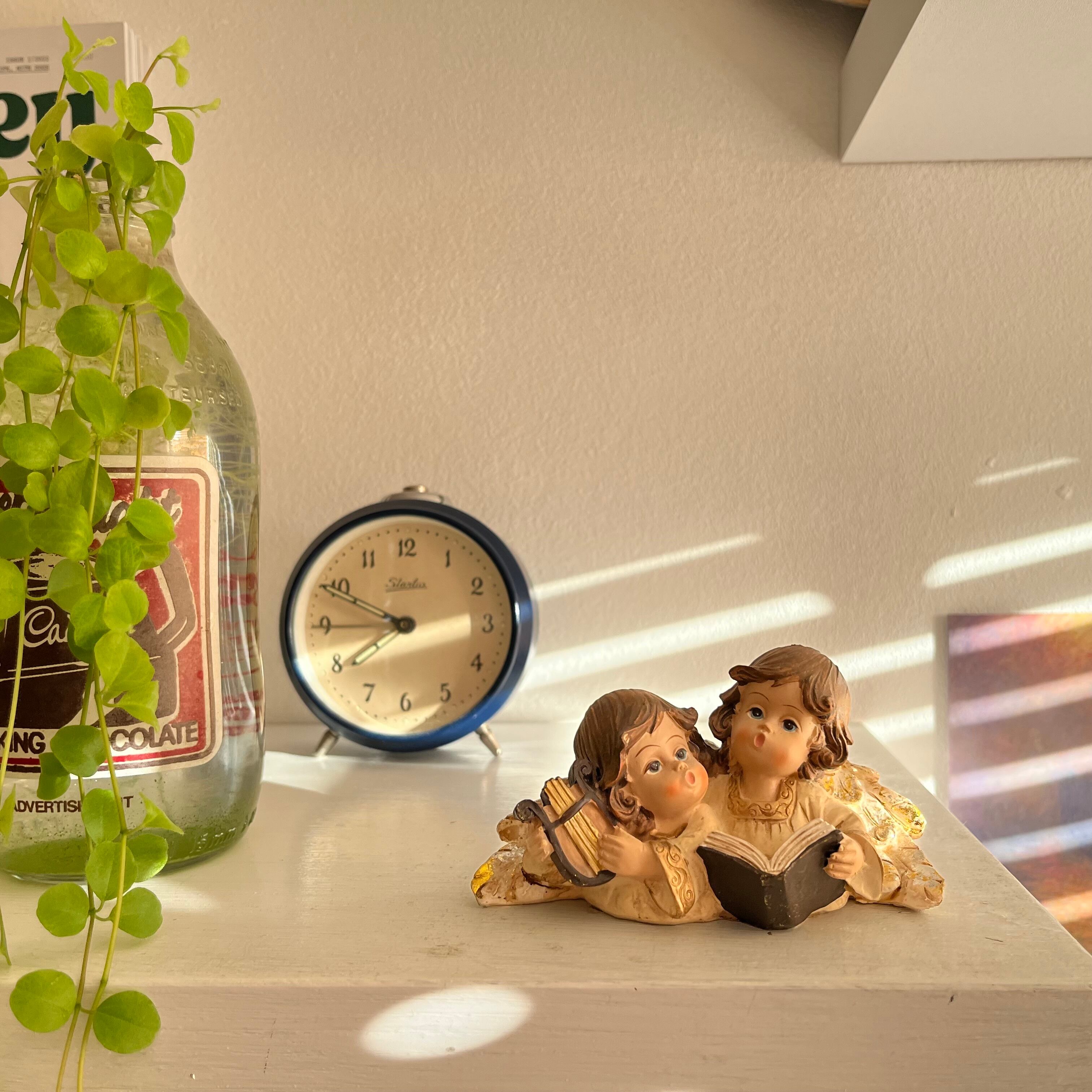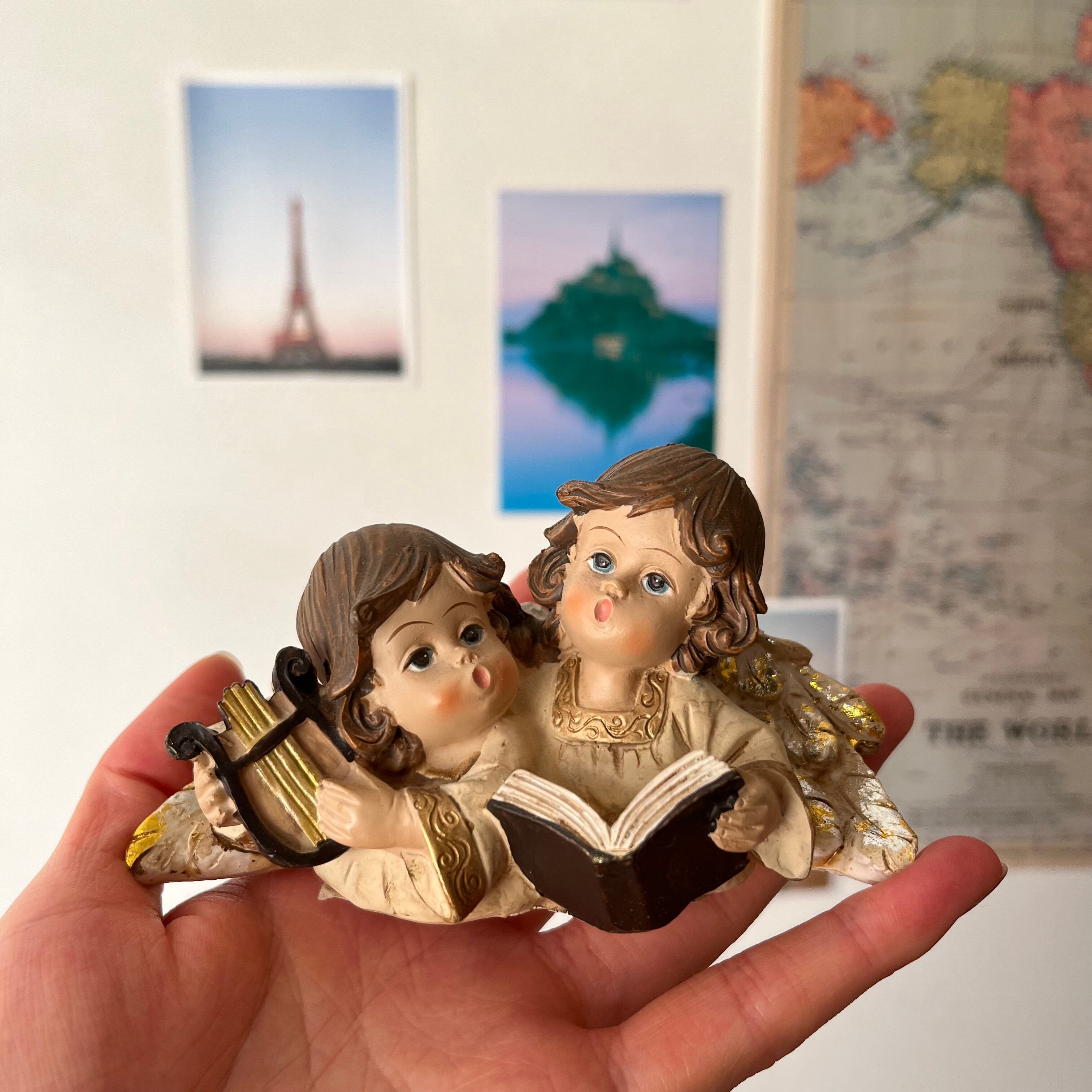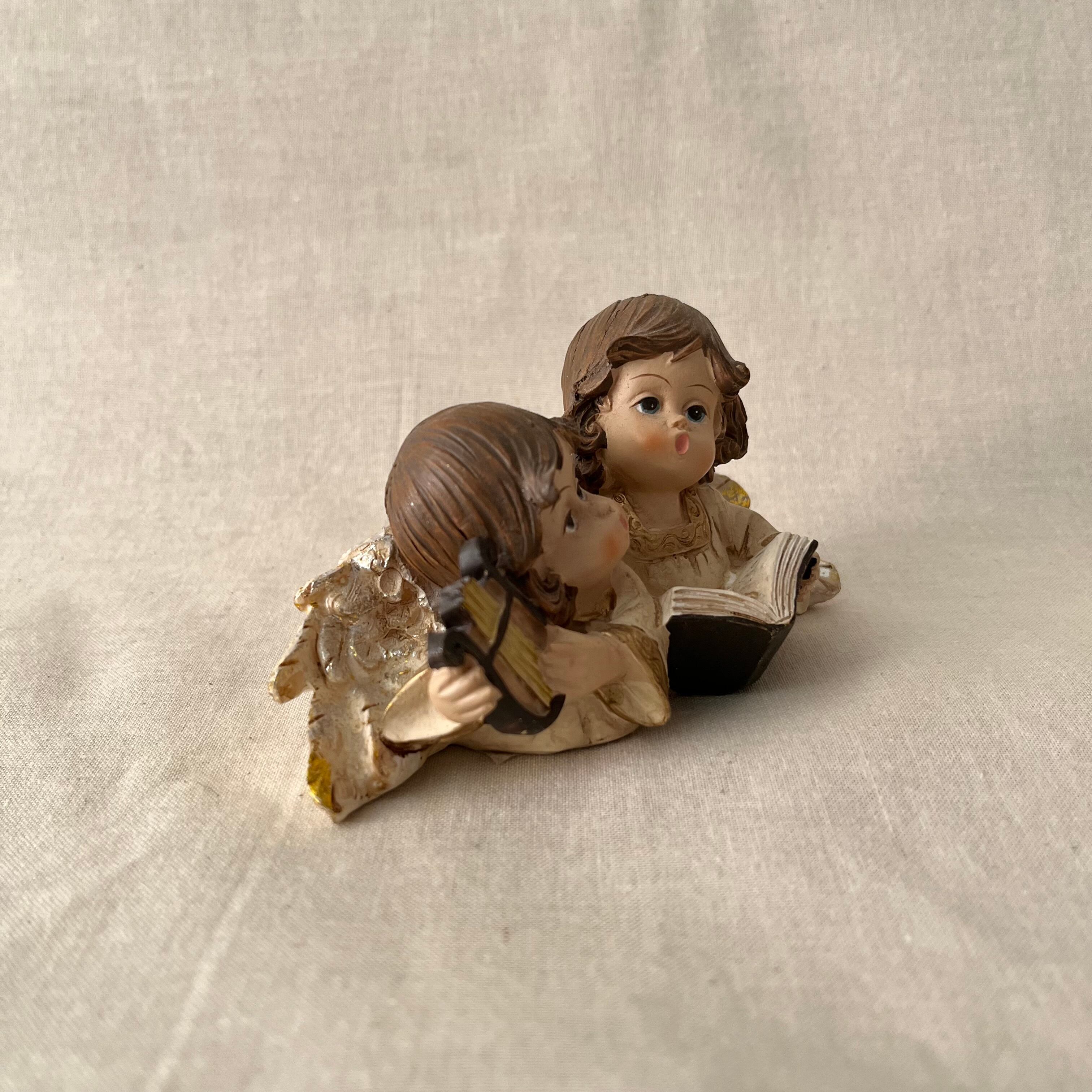 フランスの小さな町で出会った、ふたりの天使のオーナメント。ハープを手にした天使と、本を開いた天使が寄り添いながら、まるで空に向かって歌を捧げているような、穏やかで心あたたまるアイテムです。